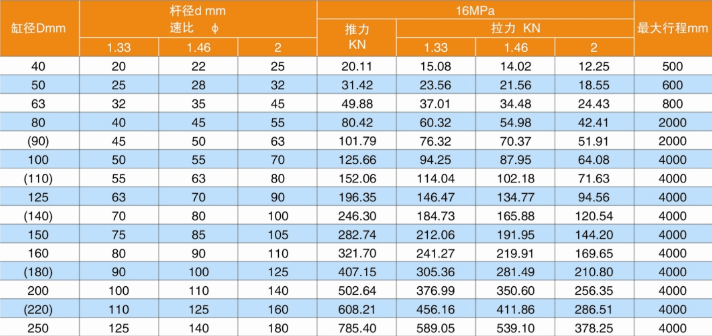 活塞桿端為外螺紋連接的尺寸表(mm)
